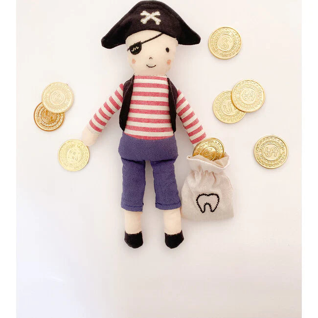 Haz aun más especial ese momento tan esperado en la vida de tus hijos con este muñequito de pirata con un bolsita para guardar su diente cuando se le caiga. Este amigable pirata mantendrá su diente seguro durante toda la noche y después podrá jugar e imaginar nuevas aventuras mientras esperan a que se caiga otro diente. Su diseño, calidad y telas son verdaderamente hermosas.