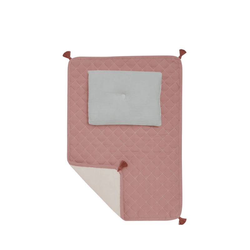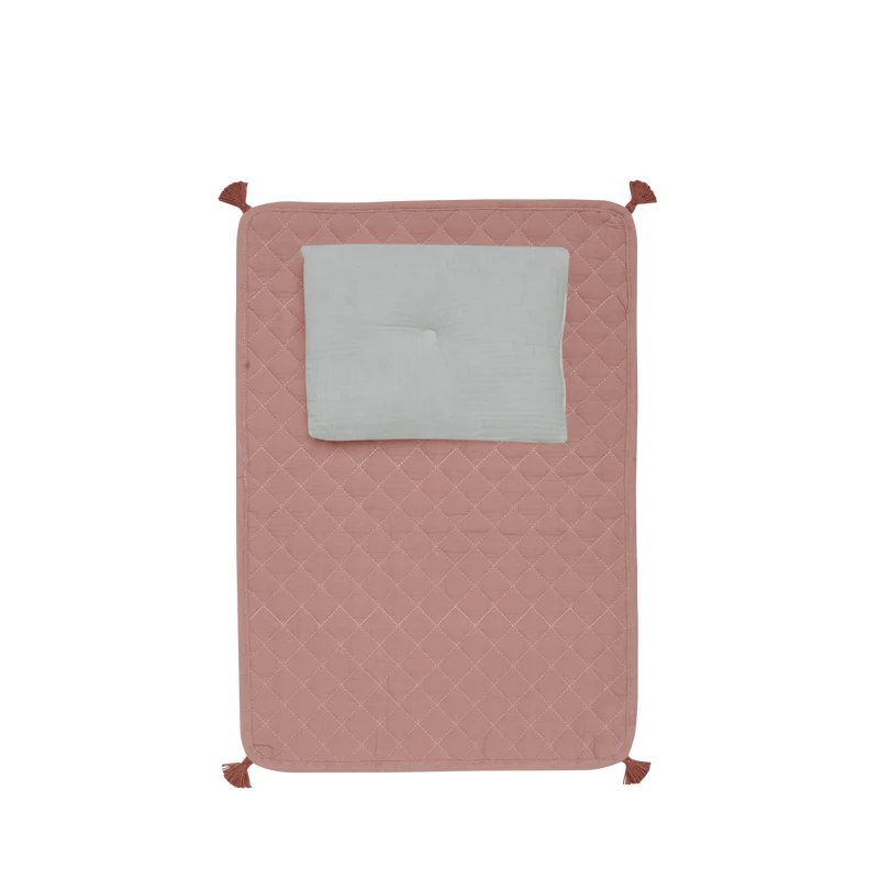 Suave como un abrazo, dulce como un secreto. En color rosa, este mini juego de cama envuelve a tu muñeca Dinkum Doll en comodidad allá donde vaya, ya sea a la cocina, al jardín o a una luna imaginaria. Con o sin carrito, es el lugar perfecto para que descansen sus cabecitas.