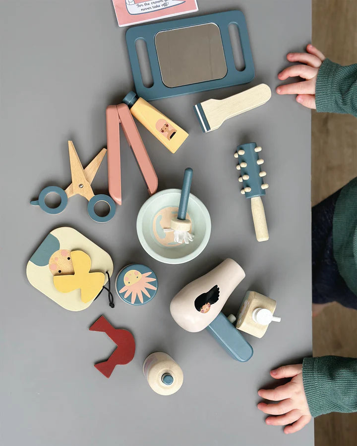 Para todo tipo de cabello, colores y estilos, este salón de belleza ofrece los peinados, cortes y tratamientos más creativos. Fabricado en madera con acabado en colores neutros, un espejo de mesa giratorio, una repisa de almacenamiento y un agujero para la secadora.