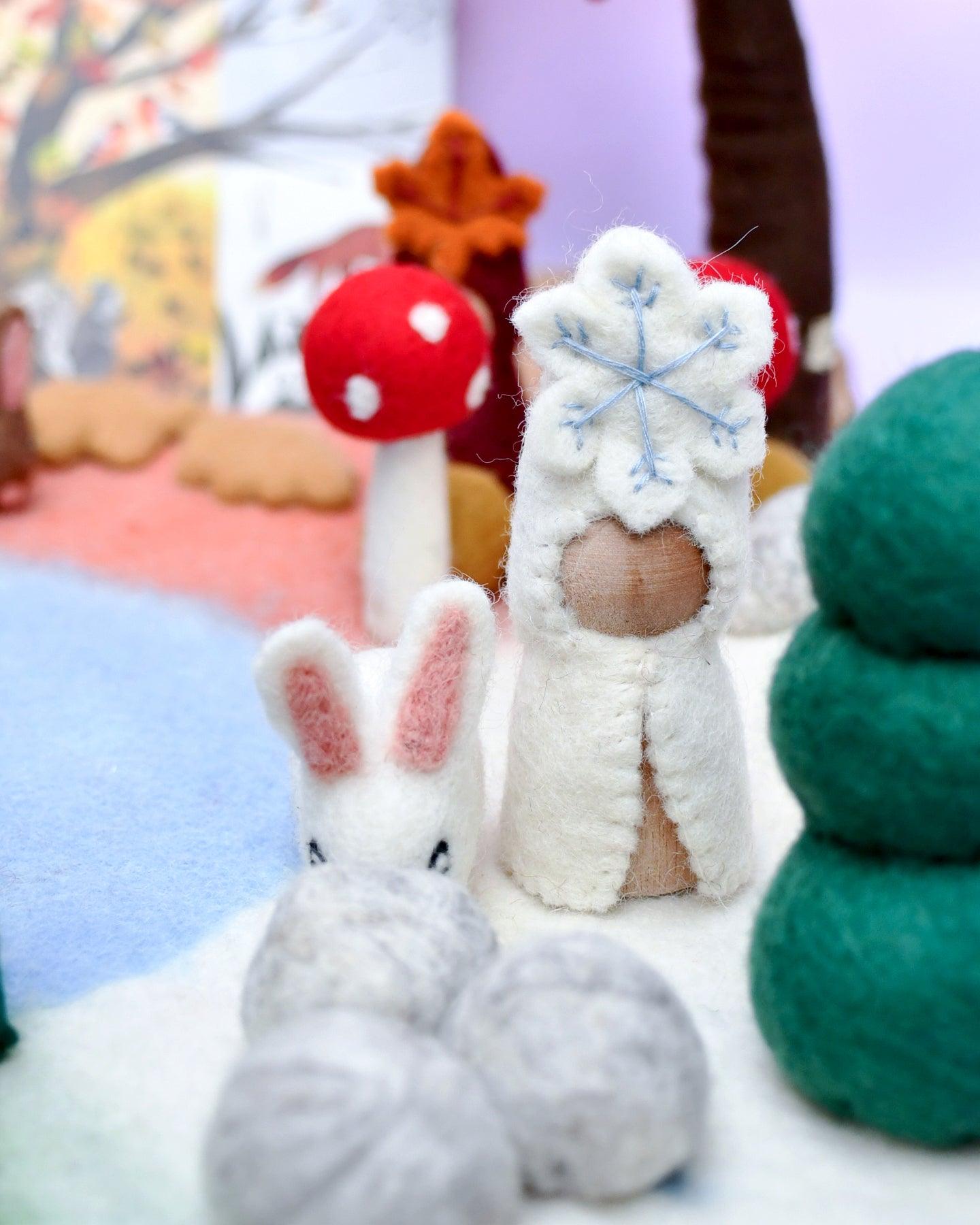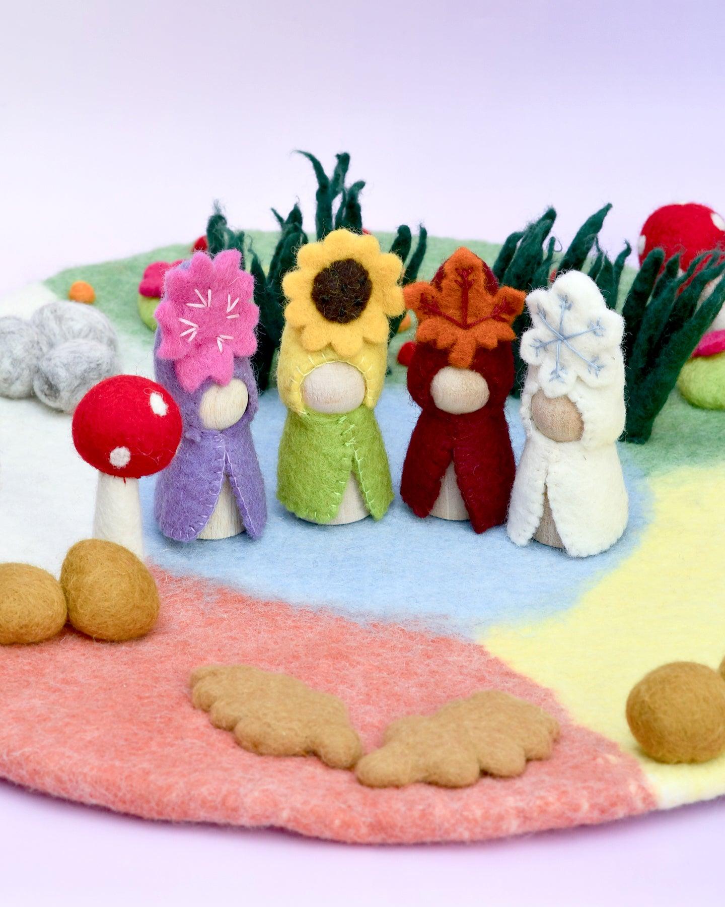Tenga en cuenta que este listado es solo para el tapete de juego como se muestra en la primera imagen. Todas las muñecas con clavijas, árboles de temporada y juguetes de fieltro se venden por separado y se fotografían con fines ilustrativos.