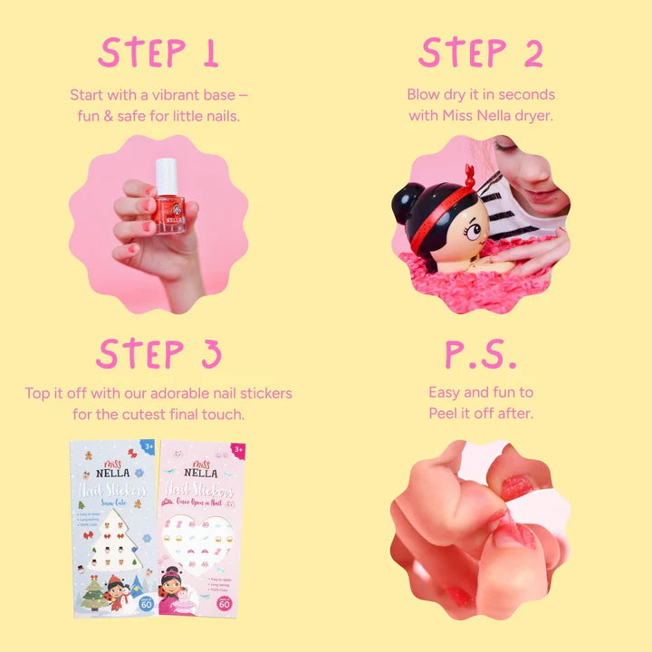 🌸✨ ¡Adéntrate en un mundo de magia e imaginación con el encantador pack de 4 de la colección Miss Nella Fairytale! Este caprichoso set incluye cuatro encantadores esmaltes de uñas peel-off a base de agua, perfectos para que las pequeñas soñadoras exploren su creatividad con facilidad. 🧚♀️💅