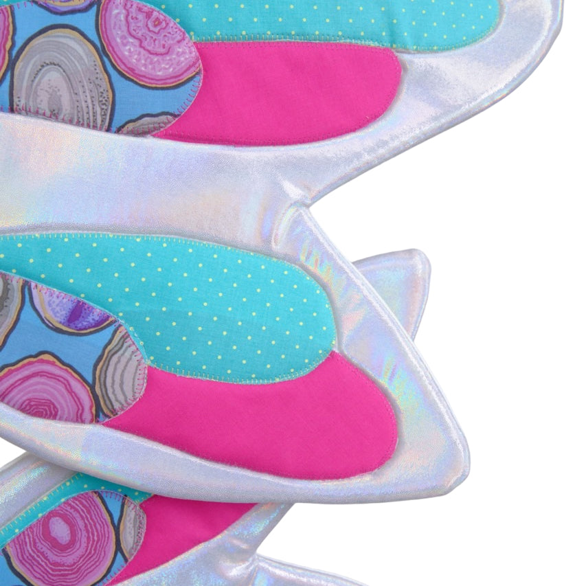 Alas fantásticas Moradas con manchas rosas y cola blanca