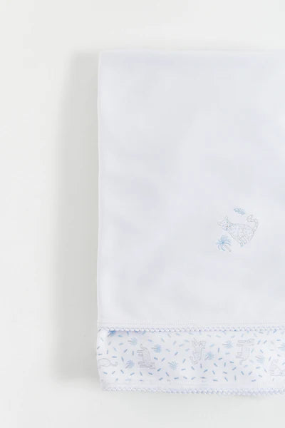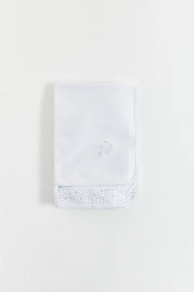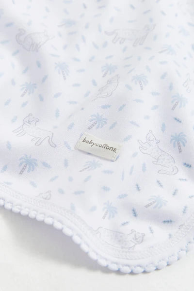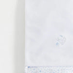 Cobija de algodón pima, confeccionada en algodón suave para un contacto delicado con la piel del bebé. Por un lado es estampada, y por el otro es de algodón pima liso en color blanco con bordado de colección en un extremo. Con dimensiones aproximadas de 73x69cm, es perfecta para cubrir al bebé o envolverlo, brindando comodidad y calidez adicional. Una opción práctica y acogedora para cuidar y proteger al bebé en todo momento.