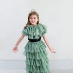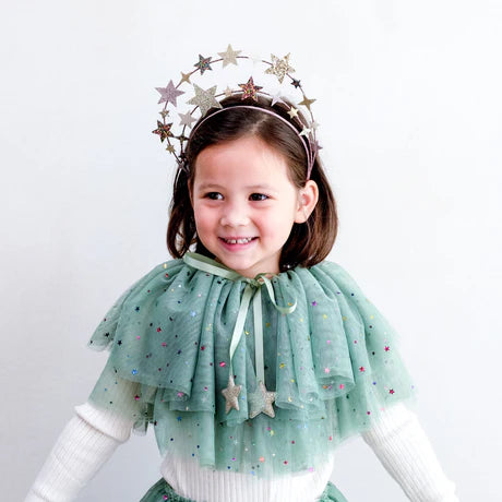 Capas de tul verde súper suave salpicadas de estrellas metálicas multicolores