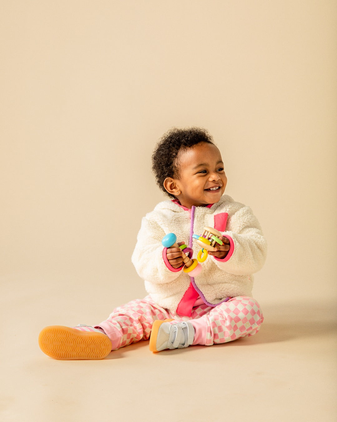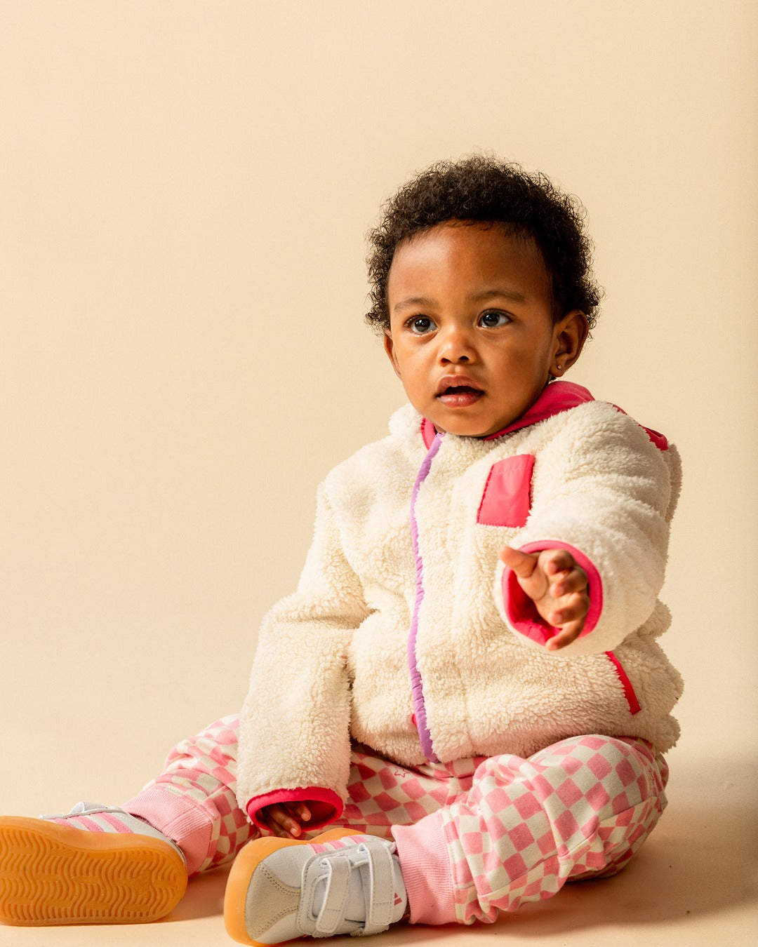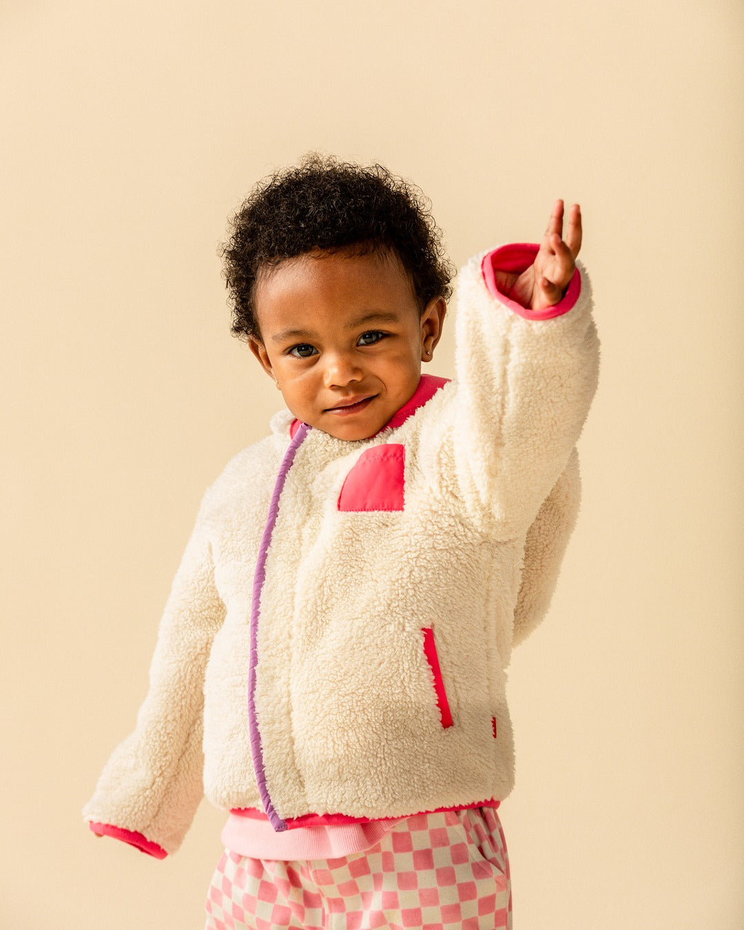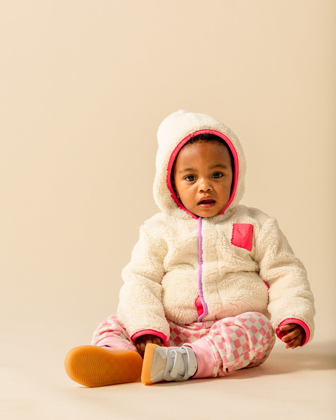 Nuestra Chamarra Sherpa Magnética está diseñada con cierres magnéticos que se ajustan en un instante. Para brindar calor sin volumen, está hecha de felpa de sherpa esponjosa y forrada con suave algodón orgánico. Una capucha espaciosa y bolsillos frontales mantienen a los pequeños adorablemente cálidos y cómodos en climas más fríos.