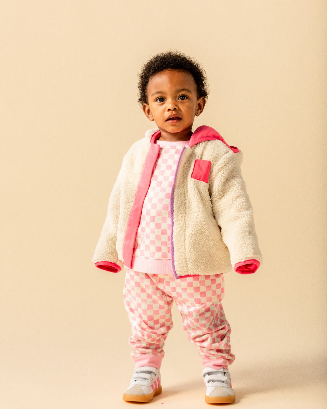 Chamarra estilo Sherpa con cierres Magnéticos color Crema con rosa