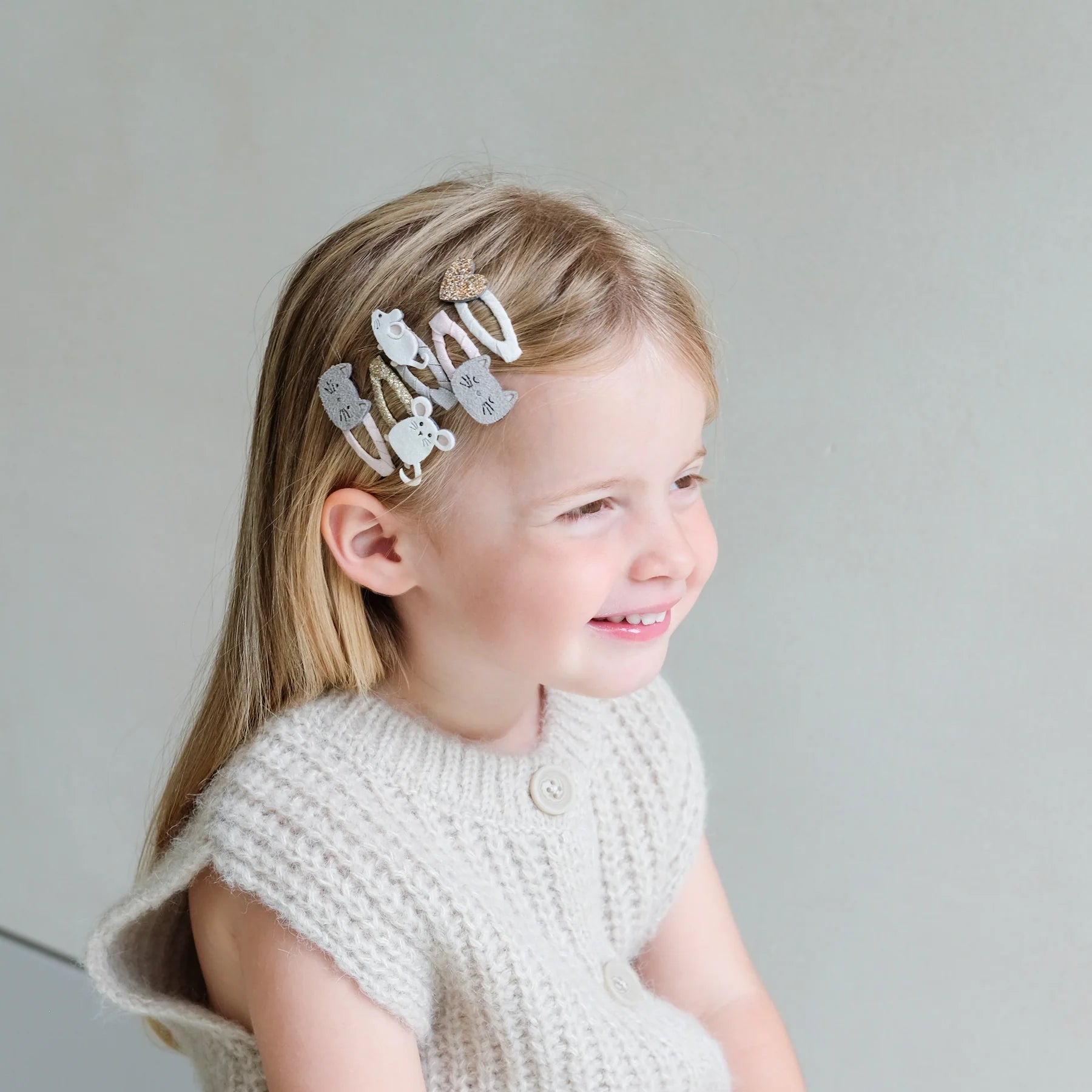 ¡Te presentamos nuestros adorables mini clips de gatos y ratones! Dos suaves caritas de gatito, dos ratoncitos muy monos y un corazón dorado brillante: ¡combínalos como quieras para crear todo tipo de estilos adorables!