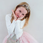 Esta elegante tiara, ideal para una pequeña princesa, está diseñada para ocasiones especiales. Con una banda envuelta en cinta y brillantes piedras de diamante, es el complemento perfecto para los trajes de fiesta y otros momentos memorables.
