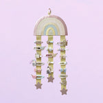 Arcoíris en una combinación de rosa suave y purpurina dorada y tejidos metalizados.