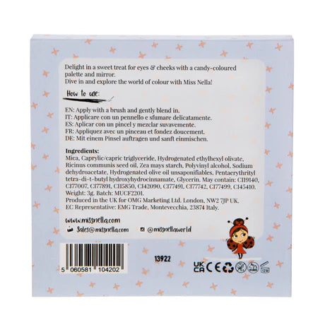 Deléitate con un dulce regalo para ojos y mejillas con una paleta de colores caramelo y un espejo. ¡Sumérgete y explora el mundo del color con Miss Nella!