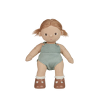¡Gigi es todo suavidad y alegría! Con su cabello dorado y su cuerpo achuchable, Gigi es tan suave como un día soleado. Va vestida con un pelele azul claro, con pequeños botones de madera y cierres de velcro, perfecto para cambiarle de ropa fácilmente. Desde risas y juegos hasta mimos a la hora de acostarse, Gigi es más que una muñeca: es una amiga juguetona y la compañera más acogedora para tu pequeña soñadora.