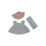 Incluye vestido floral, sombrero para el sol y manta de picnic de cuadros vichy.