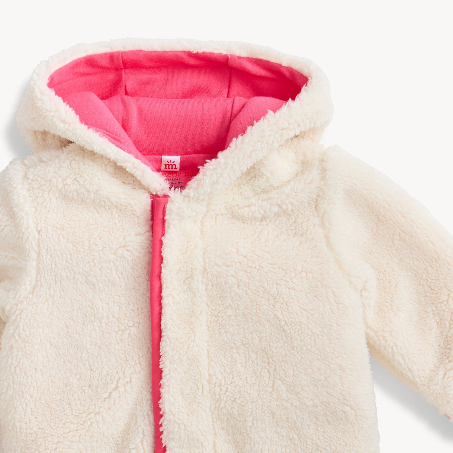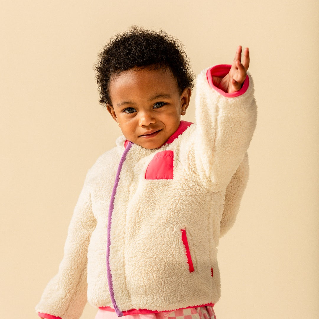 Chamarra estilo Sherpa con cierres Magnéticos color Crema con rosa