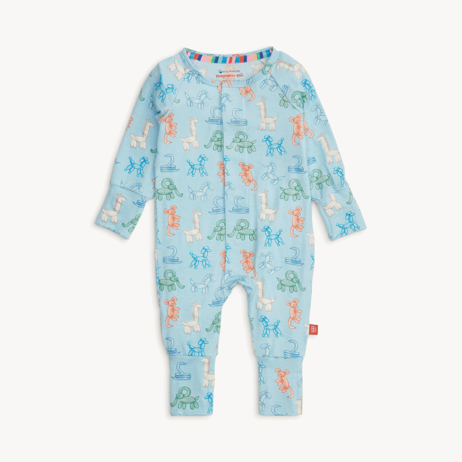 Pijama con pies convertibles y cierres magnéticos "Blue Party Animals Glow in the dark"