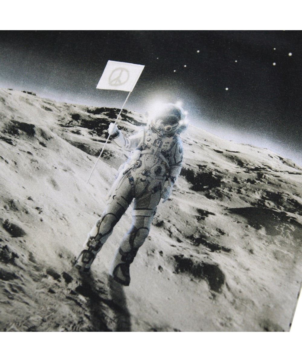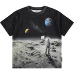 Camiseta negra confeccionada en suave algodón orgánico con mangas cortas y cuello acanalado. La camiseta tiene un corte holgado y lleva estampado el hombre en la luna.