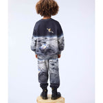 Sudadera confeccionada en suave algodón orgánico con un estampado de un astronauta en la luna. La sudadera tiene ribetes acanalados en el cuello, las mangas y la cintura. La sudadera tiene un corte holgado.