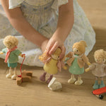 Conoce nuestra colección de muñecos de madera para el juego libre e imaginativo. Se pueden jugar solos o pueden ser el complemento perfecto para nuestras casas de muñecas. Fabricados en madera natural sustentable, con hermosos tejidos y atención al detalle.  La muñeca Amy incluye un bello conejo a quien ama cuidar.