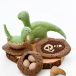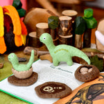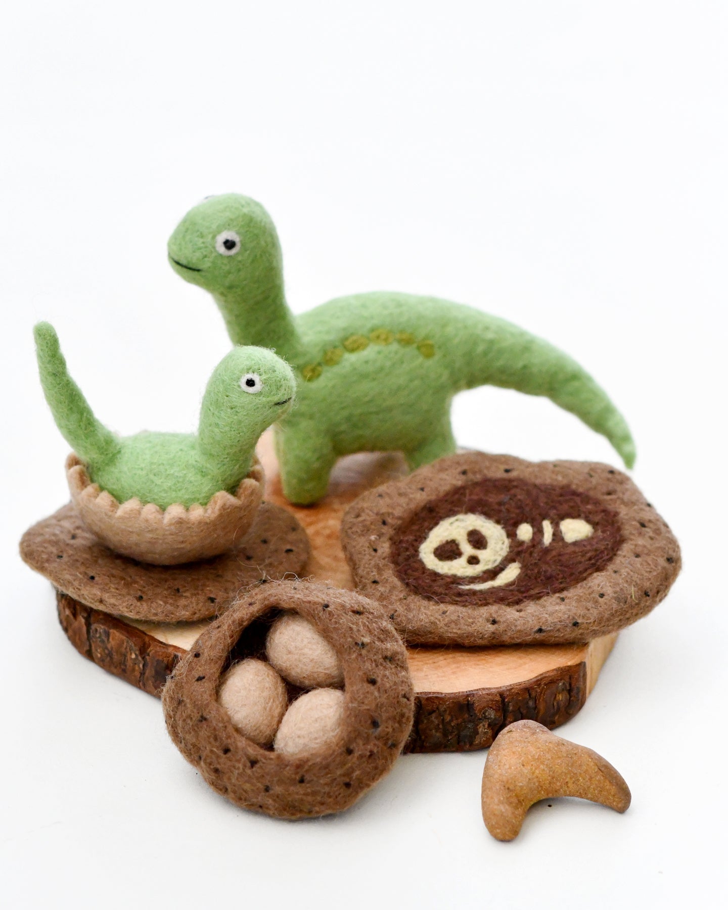 El dinosaurio Brontosaurio es un gigante gentil y uno de los dinosaurios más queridos del período Jurásico. Este conjunto de fieltro de lana está elaborado con exquisita atención al detalle y explora las diferentes etapas del ciclo de vida del dinosaurio brontosaurio.