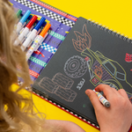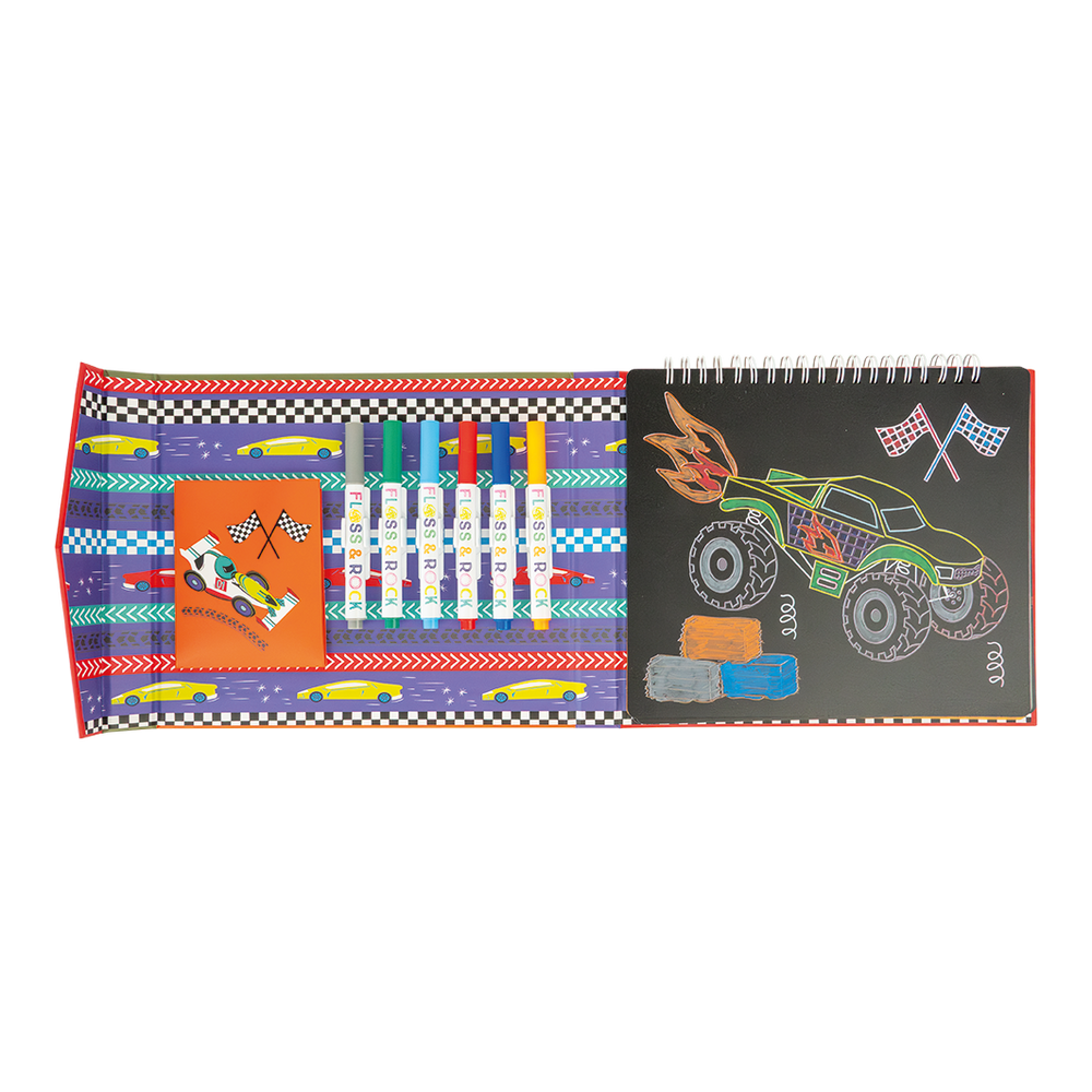 ¡Diversión en pizarra en formato de cuaderno de bocetos lavable! Este genial cuaderno de bocetos de Cars contiene 8 páginas: 5 páginas con ilustraciones listas para colorear de coches de carreras, trofeos, monster trucks y más, ¡y 3 páginas lisas para dibujar a tu gusto! También incluye una hoja de calco y una fantástica hoja de plantillas con temática de Cars. Ambas hojas se pueden quitar y enganchar a la espiral donde prefieras. El cuaderno incluye 6 tizas de colores y un práctico paño de limpieza para limpiar las páginas al terminar, ¡listo para retomar tu creatividad la próxima vez! Las páginas están impresas con tintas vegetales y todo el papel, cartón, plástico y metal son reciclables.