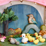 Inspirada en la canción infantil favorita de mi hijo "5 patitos", esta alfombra de juego para estanque de patos consta de Mamá Pata y 5 patitos amarillos. Nuestra alfombra de juego para el estanque de los patos está decorada con piedras de fieltro, flores amarillas y una hermosa hierba de fieltro hecha a mano con lana merino. Los patos han sido meticulosamente fieltrados y se pueden mover por el paisaje de juego.