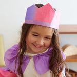 ¡Nuestras coronas de seda son brillantes, hermosas y se ajustan cómodamente! La parte trasera elástica les permite estirarse para adaptarse a la mayoría de tamaños de cabeza. Pintado a mano sobre seda jacquard con textura luminosa en nuestras combinaciones de colores más queridas. A los niños les encantará incorporar coronas en sus juegos imaginativos y de disfraces diarios, ¡además son perfectas para cumpleaños y otras celebraciones!