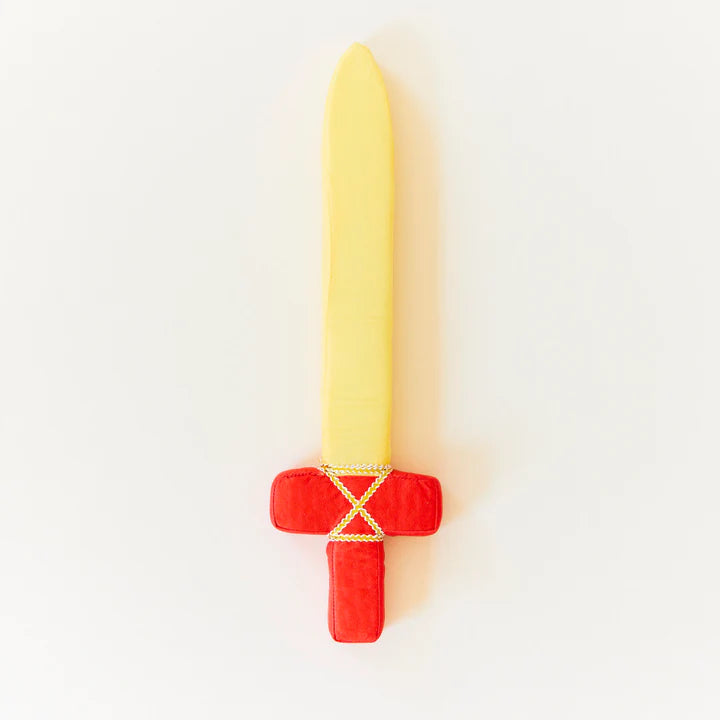 Las espadas blandas rojas miden 17 pulgadas de largo y están hechas de espuma suave pero rígida. Están cubiertas con nuestro mango de seda con patrón jacquard rojo y una "hoja" de seda dorada.