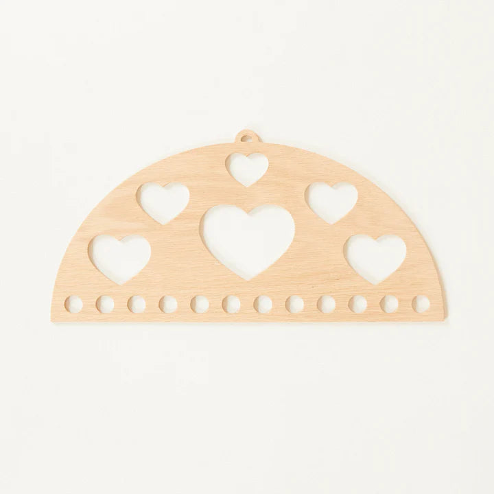 El expositor de sedas de madera con forma de corazón grande de Sarah's Silks es un complemento práctico y bonito para hogares, guarderías y centros educativos. ¡Simplemente cuélgalo en la pared y coloca tus sedas o paños de juego! Es fácil y divertido para que los niños aprendan a cuidar sus juguetes y anima a los más pequeños a mantener el orden en sus espacios de juego.