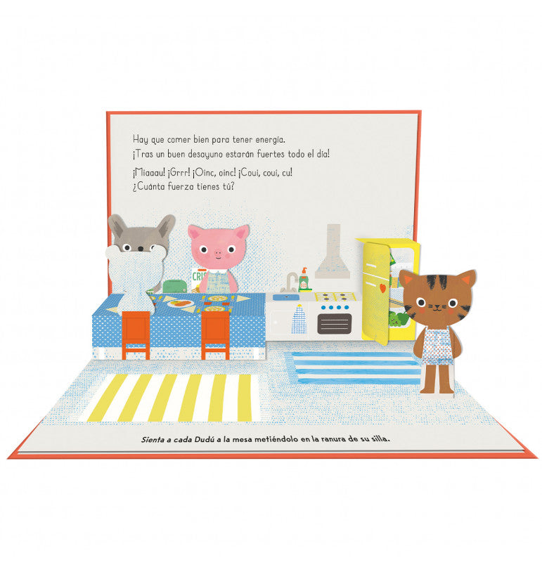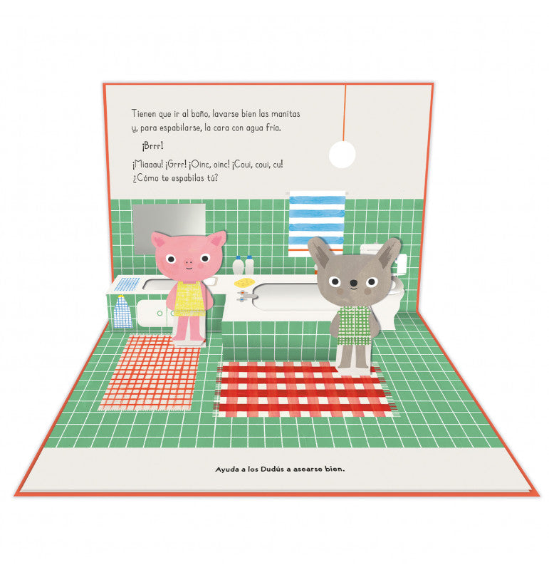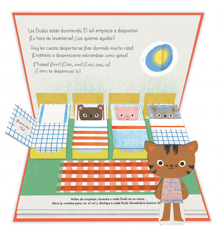 Comienza un nuevo día y los Dudús se levantan. Deben asearse, desayunar y vestirse para empezar la jornada. ¿Los ayudas? Un libro con una casa pop-up y personajes troquelados. ¡Acompaña a los Dudús en las rutinas de la mañana!