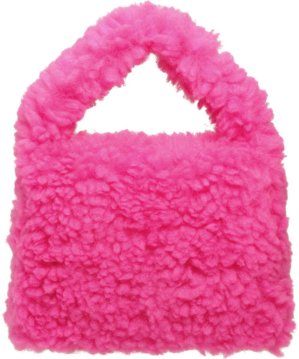 Bolso de mano de calidad peluche de color rosa con cierre magnético.
