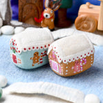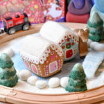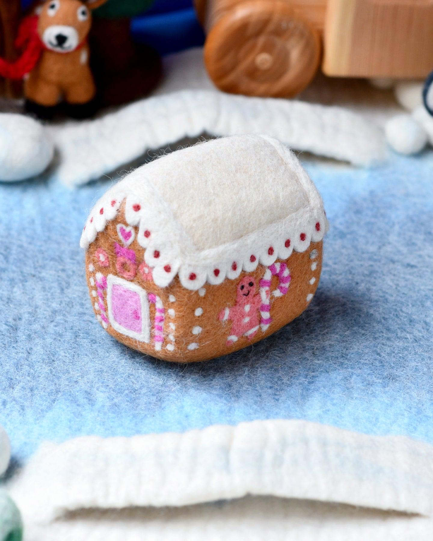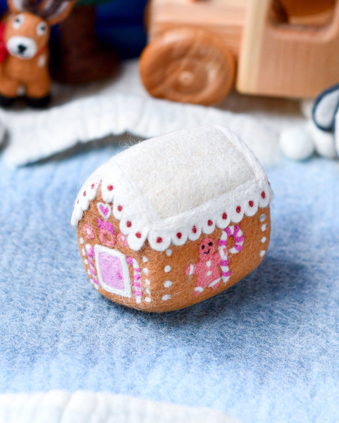 Experimenta el encanto mágico de nuestra casa de galleta de jengibre de fieltro de lana. Desde bastones de caramelo hasta remolinos de glaseado y el hombre de jengibre, cada detalle es un dulce deleite. Ya sea que la uses como complemento en un juego de simulación o la incorpore a sus decoraciones navideñas, esta casa de galleta de jengibre agrega un toque mágico a cualquier ambiente festivo.