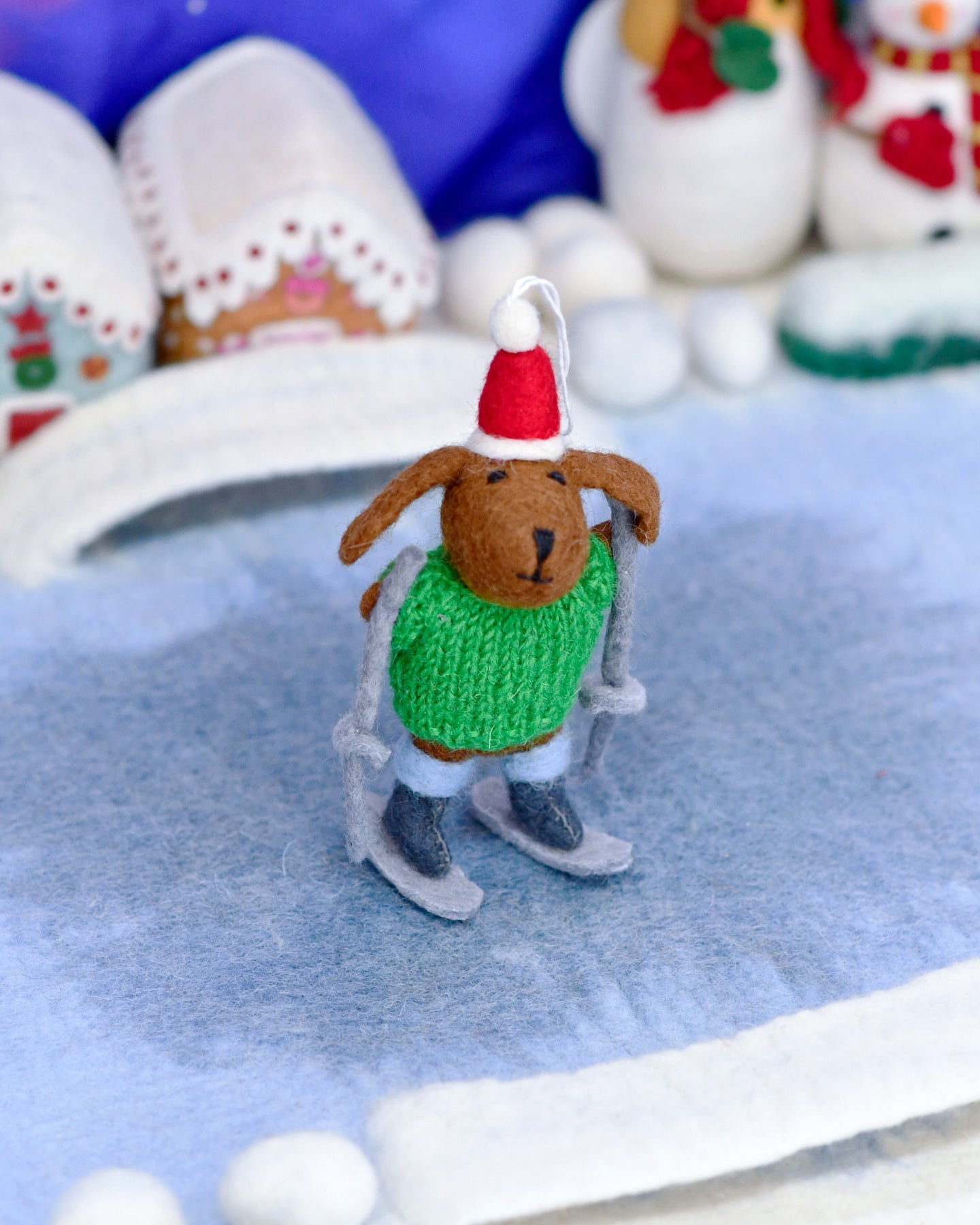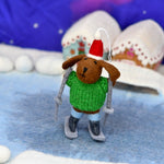 Decoración de árbol de Navidad de Perro de lana con suéter tejido sobre esquís