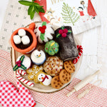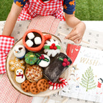 Set de comida de fieltro inspirada en juegos de simulación navideños, ideal para innumerables juegos de la comidita durante la alegre temporada.
