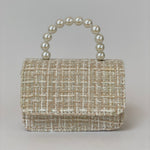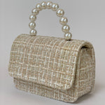 Bolso de Mano para Niñas de Tweed Rosa con Asa de Perlas - Elegante y Encantador