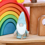 Elaborada con exquisita atención al detalle, esta encantadora muñeca con clavija de gnomo de fieltro azul pastel con barba larga y esponjosa añade un toque de encanto y personalidad a cualquier espacio de juego.