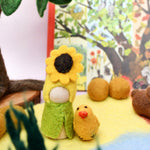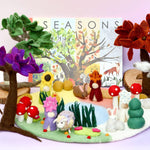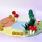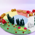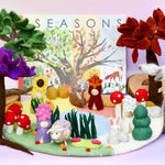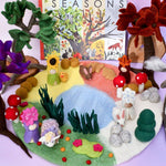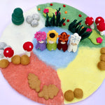 Invite a su hijo a un mundo de maravillas estacionales con este encantador paisaje de juegos de fieltro. Con un diámetro de 45 cm, esta alfombra de juego es ideal para jugar en la mesa y ofrece infinitas posibilidades para contar historias creativas. Además, cada tapete viene con su propia bolsa para el polvo para facilitar su almacenamiento y cuidado.