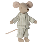 Un artículo clásico de Maileg. Este ratón está listo para horas de juego y duerme plácidamente en la pequeña caja de cerillas. La ropa y la ropa de cama están hechas de tejidos suaves con estampados únicos en bonitos colores. Amplía la historia añadiendo accesorios al juego.
