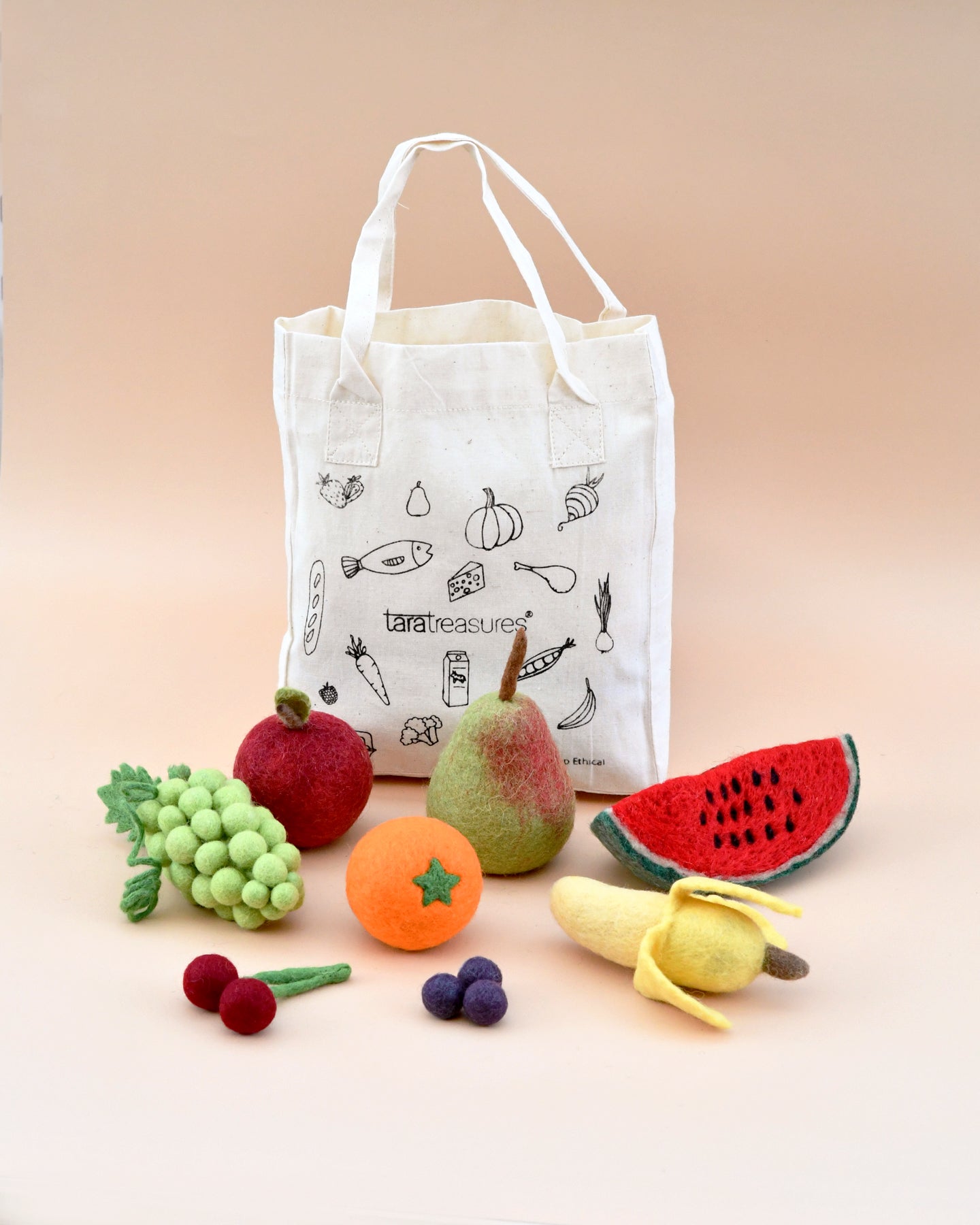 Llena tu bolsa de compras con nuestra gama de comida de juguete de fieltro.
