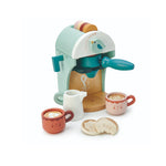 Disfruta de un delicioso cafecito con galletas utilizando nuestra maquina de café de madera. El botón del pajarito hace sonido al girarlo.