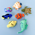 Sumérgete en un mundo de colores vibrantes y maravillas marinas con nuestros juguetes de peces de arrecife de coral: pez loro, pez payaso, pez espiga amarilla, espiga azul, pez mariposa, pez payaso, caballito de mar y tortuga marina verde. Hechos a mano con cuidado y atención al detalle, estos adorables juguetes son perfectos tanto para los niños como para los entusiastas de la naturaleza.