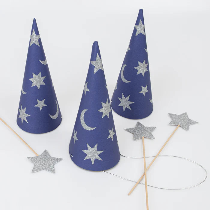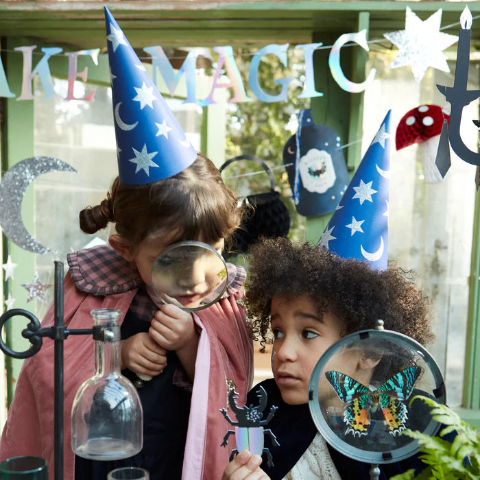 ¡Alakazam! Luce como un mago maravilloso en segundos con estos juegos de varitas y sombreros de fiesta brillantes. Lucen fantásticos en niños y adultos, perfectos para agregar a tus suministros de fiesta de Halloween o para una fiesta de magia.